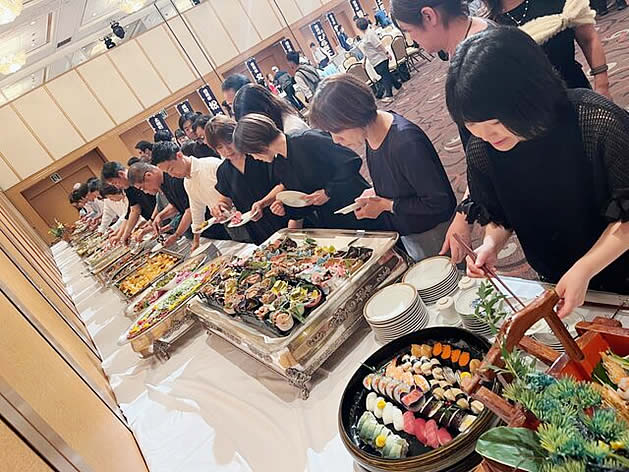 今年は、100名の参加者にお集まりいただき、18時30分に開宴。高木新理事長のあいさつのあとは、蔵元と交流しながら約50種類の土佐酒とお料理を堪能しました。